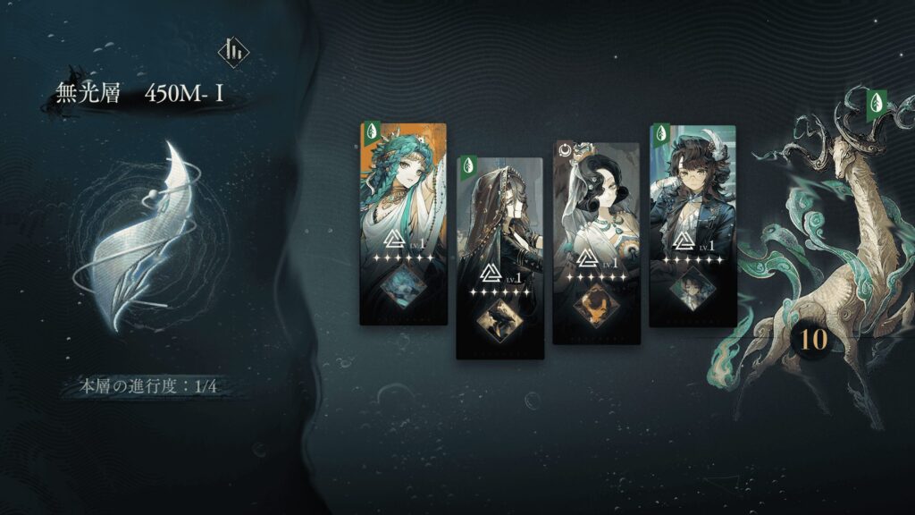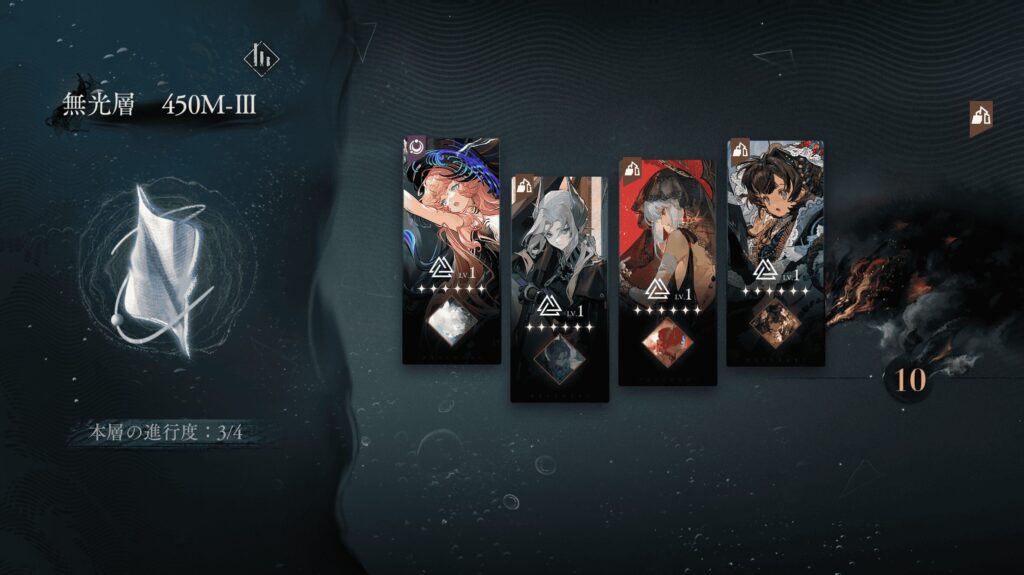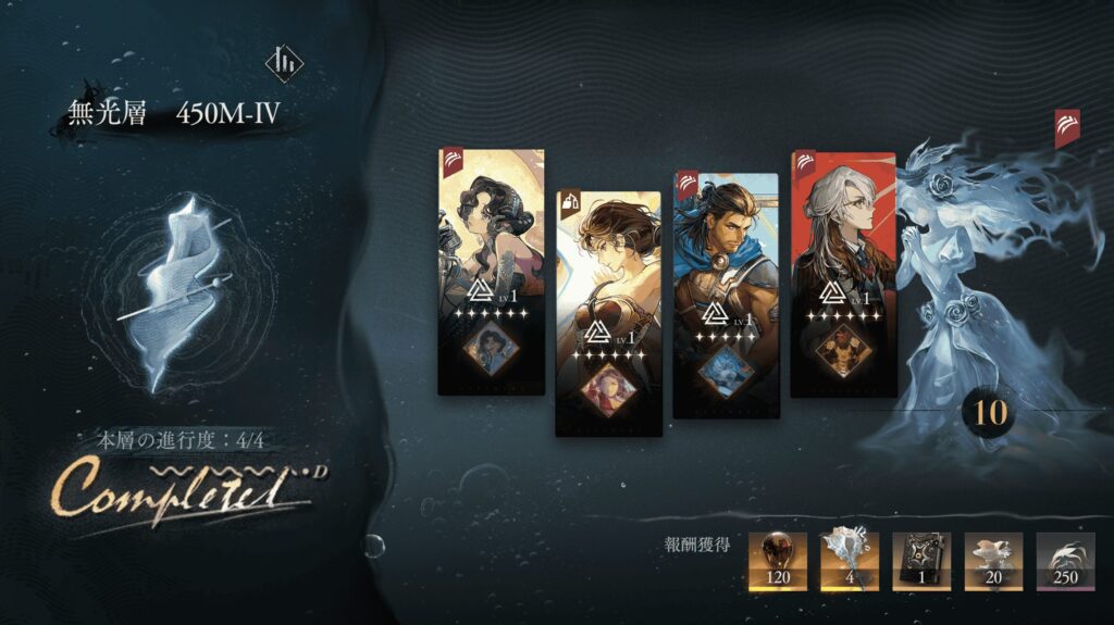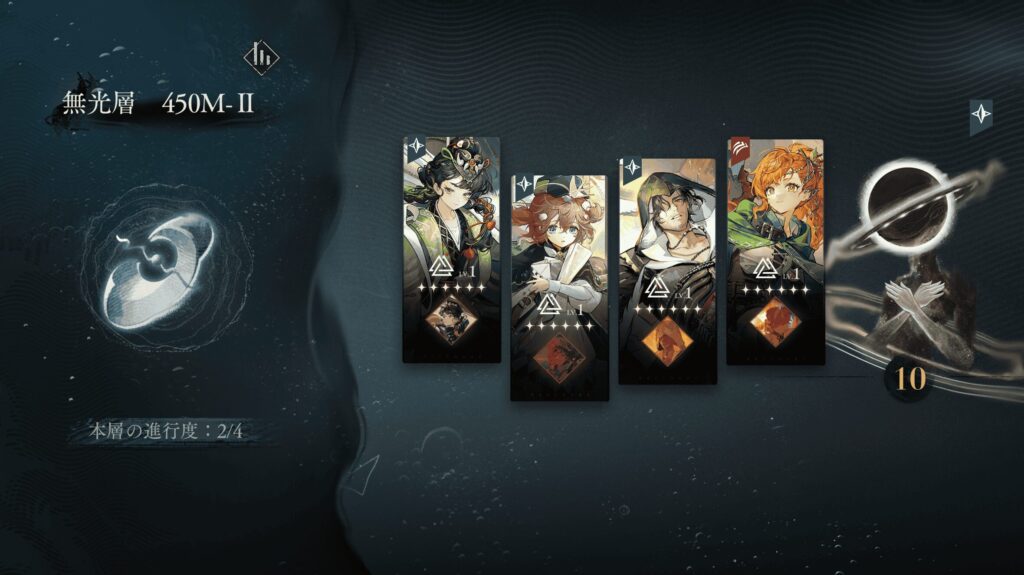 無光層 450M は, 全4ステージ構成のため, 4パーティーを編成する必要があるコンテンツです.