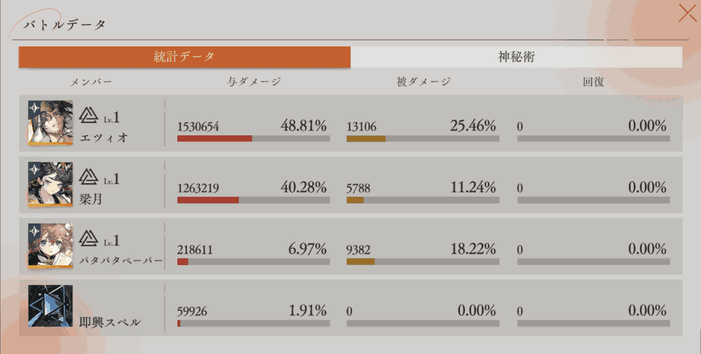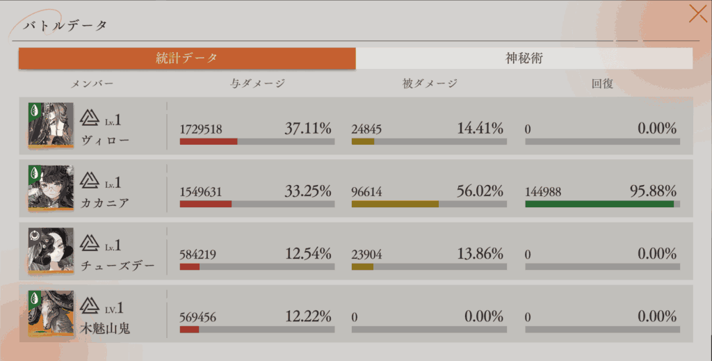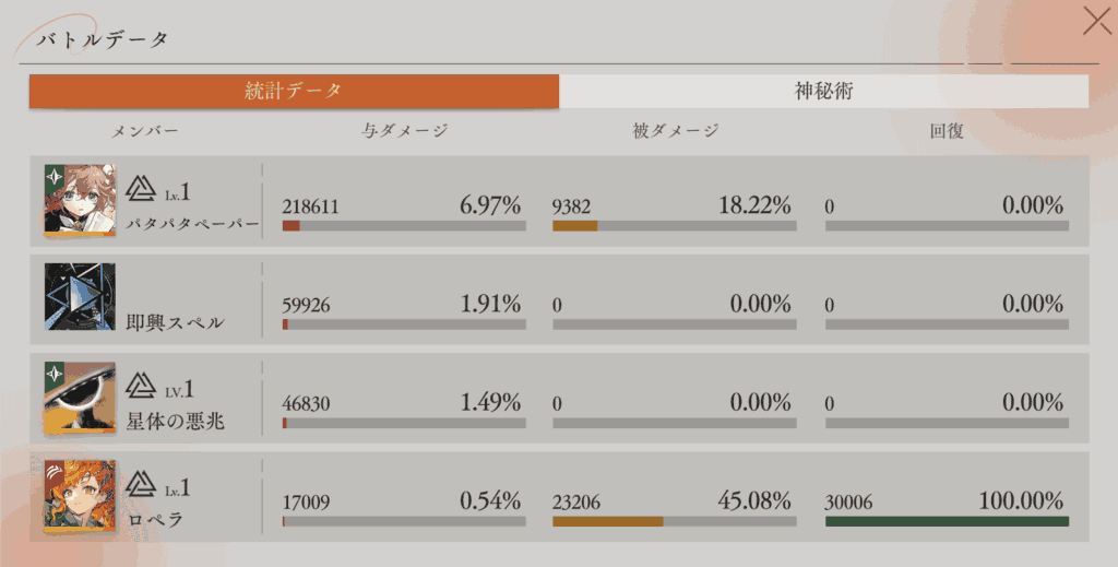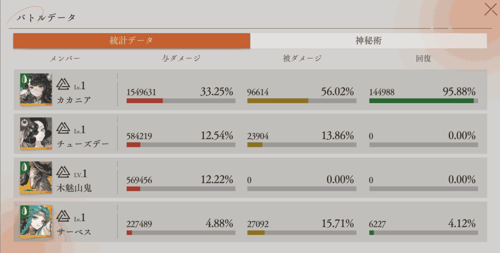 それと, リアルダメージタイプのキャラクターでは【石化】を解除してしまうため, 「【石化】だ!!」と思い至ったタイミングで, リアルダメージタイプのキャラクターは編成対象の考慮から外すことにしましたね.