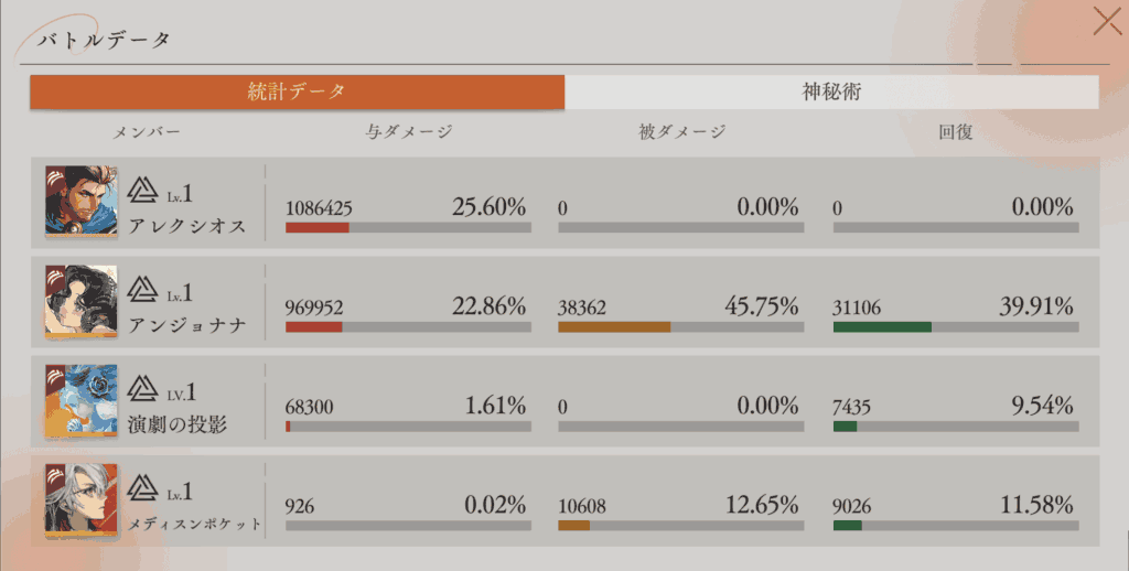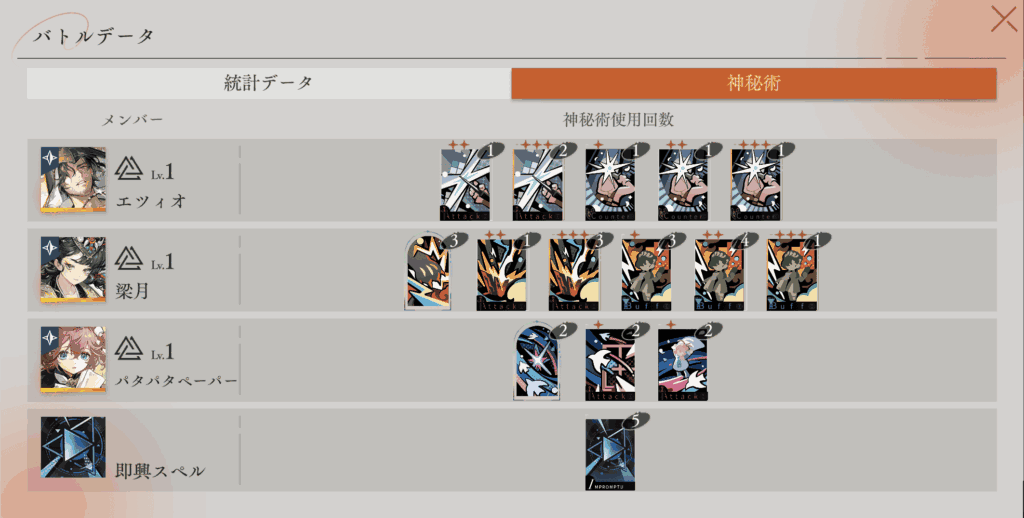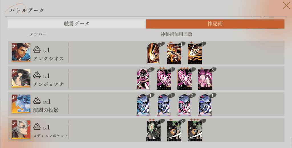 | 5 | 演劇の投影 | 洞察III Lv.1 (パーティー平均) | – | – | – |